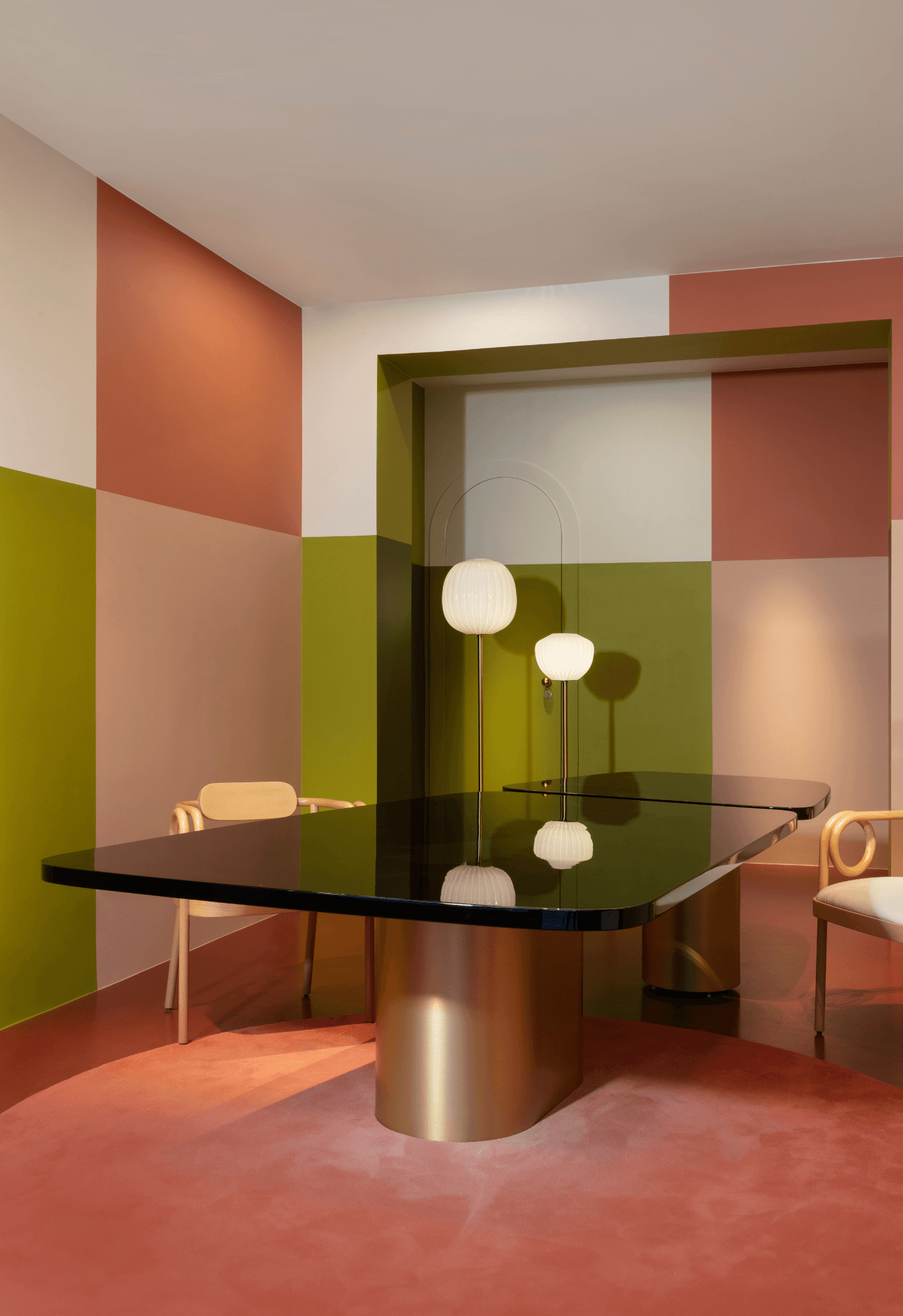 The Degradé collection is made of fine worsted wool and presents different gradient compositions: single, double, circular and border. Worsted wool creates a velvety texture and shadows that evolve with every step.